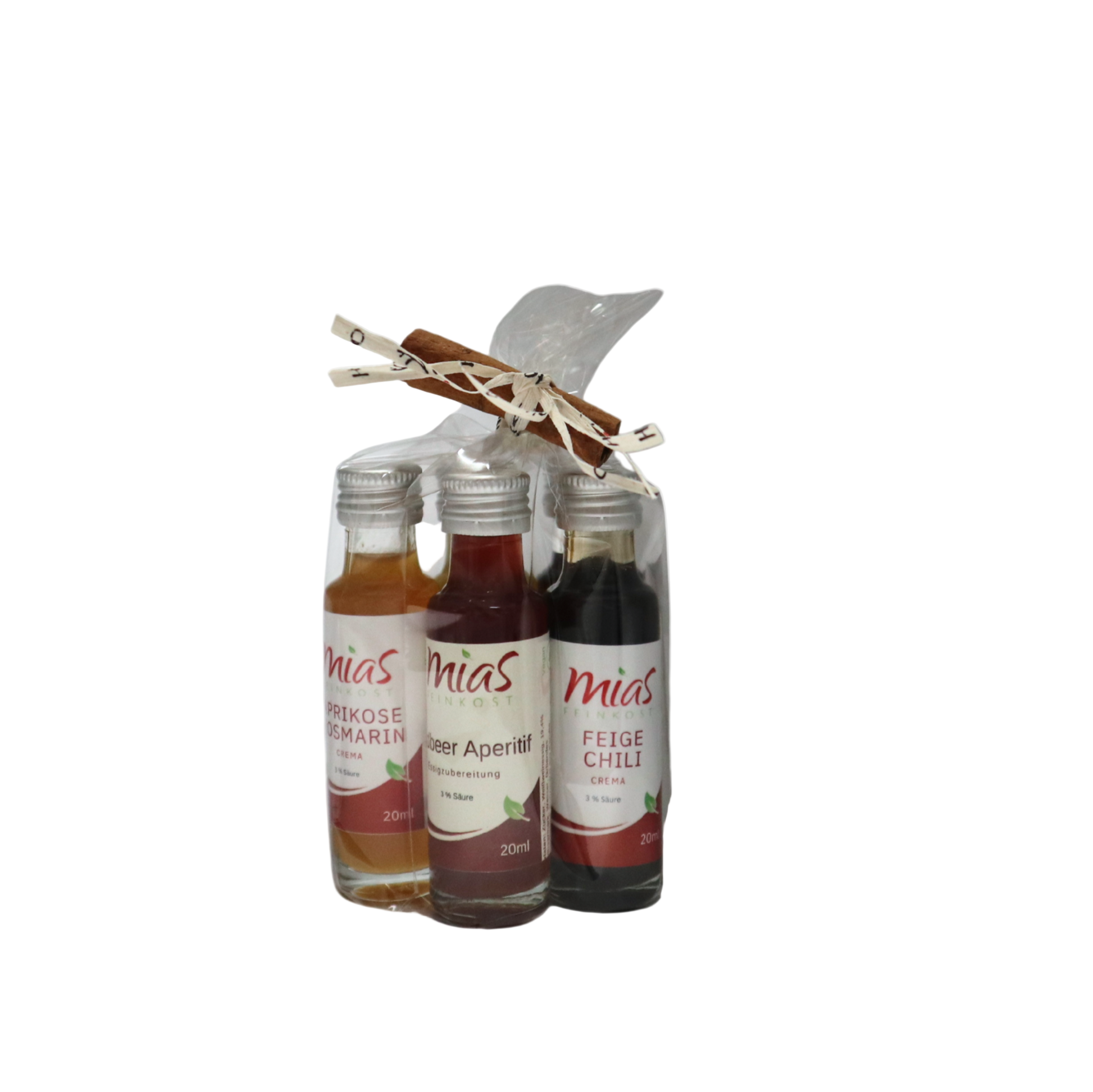 Das Set besteht aus 5 x 20ml Essigflaschen bunt gemischt