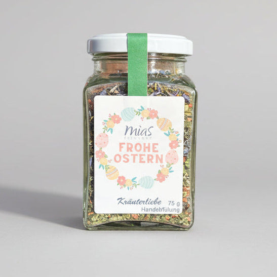 Eine kleine Portion Genuss als frühlingshafte Aufmerksamkeit! Diese aromatische Gewürzmischung wird im Handumdrehen zu einem köstlichen Dip und passt perfekt zu geselligen Runden, Osterbrunch oder den ersten warmen Tagen im Sonnenschein. Mit dem Etikett „Frohe Ostern“ ist das Glas ein liebevolles Mitbringsel, ein herzlicher Saisongruß oder eine leckere Überraschung für besondere Frühlingsmomente.
